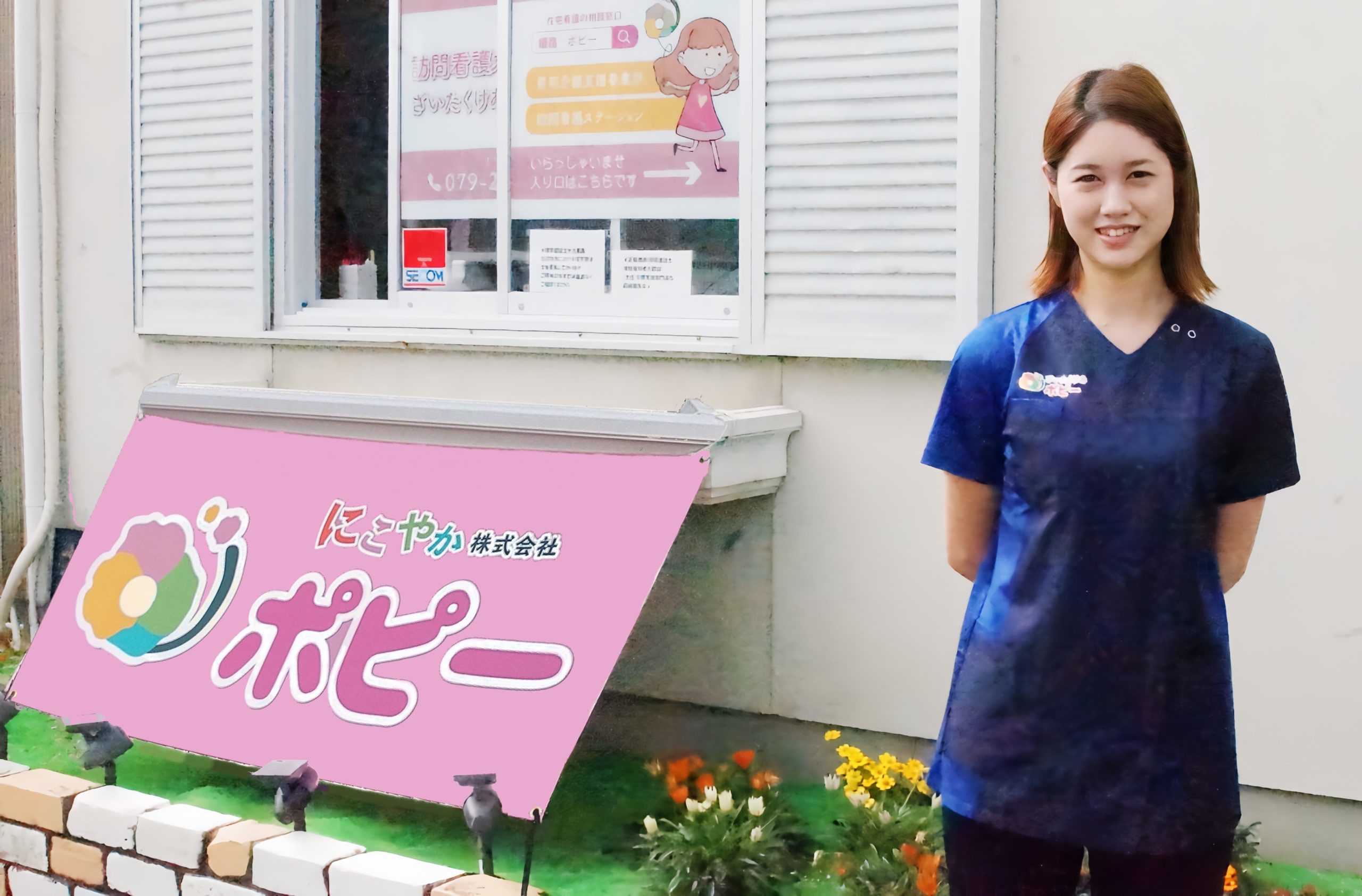 2022年4月1日にこれまでの看護師としての経験を活かし、「訪問看護ステーションざいたくけあポピー」「居宅介護支援事業所けあぷらんポピー」を併設し、互いに連携を図りながら事業を展開しています。